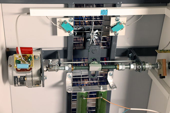 - Механизм поворота лотков - кулисный. Двигатель - российский "РД-09". Автоматика переворотов задублирована возможностью переворота лотков за внешний штурвал, не открывая дверь в инкубационную камеру инкубатора.