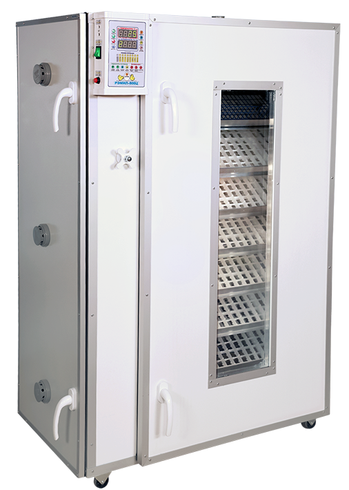 - Высокий процент выводимости для яиц любых видов птиц, в том числе водоплавающих, который достигается благодаря конструктивным особенностям инкубатора. Конструкция инкубатора обеспечивает быстрое и равномерное движение воздуха вдоль лотков. Благодаря этому в инкубаторе поддерживаются равномерная температура и влажность, равномерно и эффектвино охлаждаются яйца бройлеров, водоплавающих птиц на последних сроках инкубации, когда яйца этих птиц начинают выделять большое количество тепла.