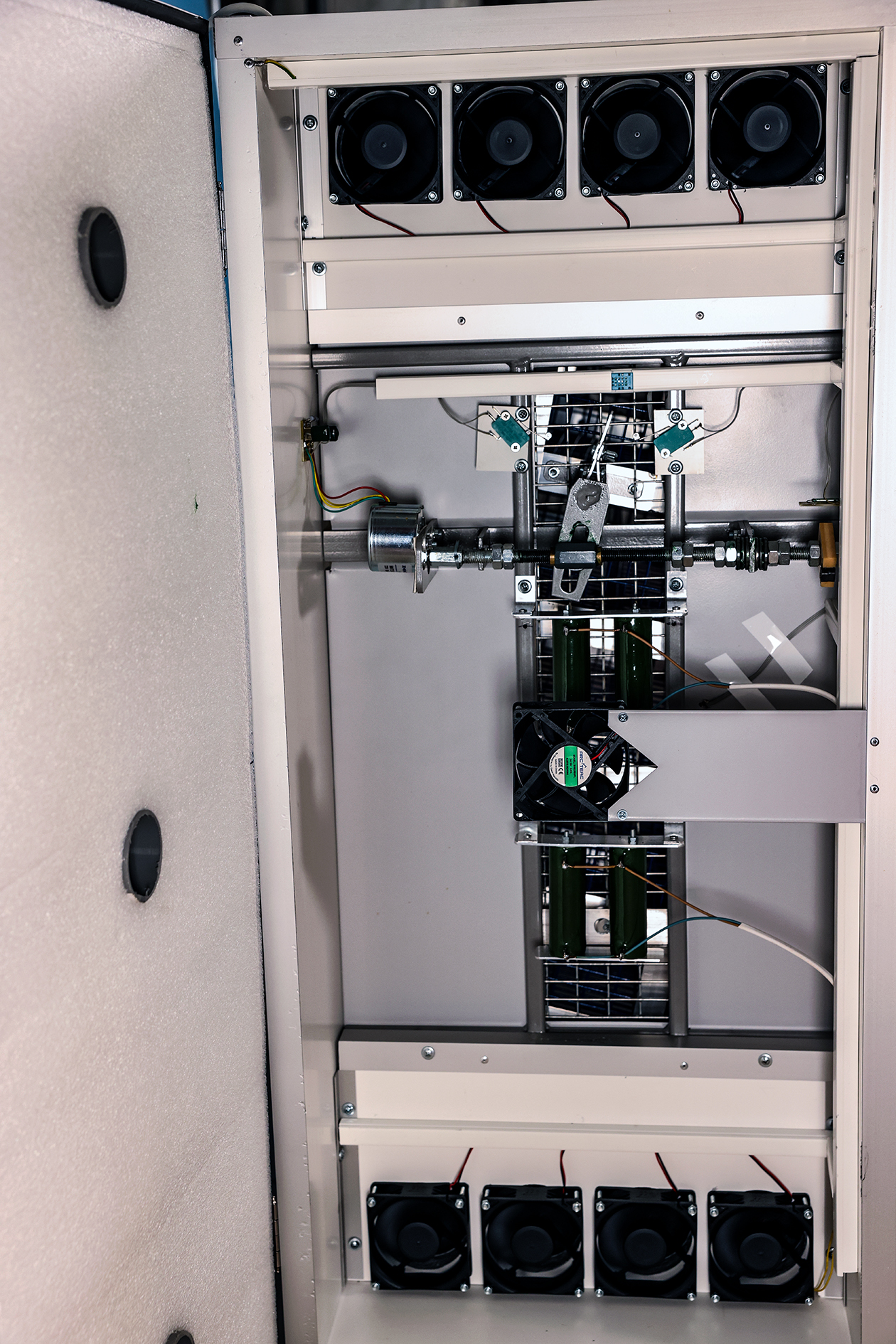 - Наличие боковой камеры со своей дверью позволяет удобно обслуживать вентиляторы, нагревательные элементы, механизм поворотов, в случае необходимости позволяет произвести ремонт инкубатора не открывая дверь в инкубационную камеру. Кроме того, открывая боковую дверцу можно дополнительно охладить инкубатор, например, при инкубировании яиц водоплавающих птиц.